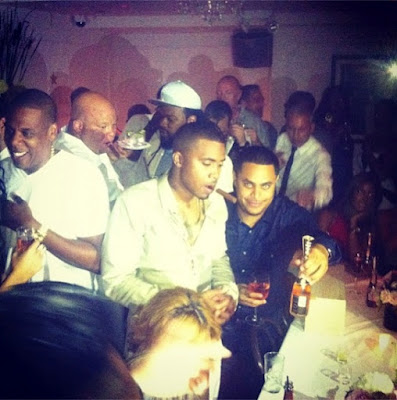 The Moet Rose Lounge series hosted a private 50-person dinner & 200-person party at the newly opened Bagatelle in NYC. Life Is Good is Nas' 10th studio album....and it's one of his hottest yet. So his homie Jay-Z was on hand to celebrate and take some shots, and they acted like true BFFs who have moved on from the past.