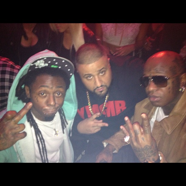 Lil Wayne and Baby came out for the festivities! Thanksgiving weekend was in full effect in Miami with all the rap superstars. DJ Khaled brought out Lil Wayne, Diddy, Kanye West, Busta Rhymes, Fat Joe, DJ Khaled, Timbaland, Ace Hood and French Montana to LIV nightclub inside the Fontainebleau Hotel.
